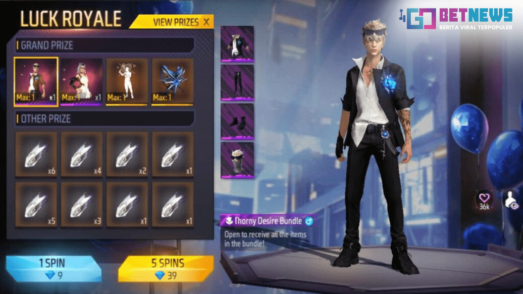 Lakukan spin hingga kamu mendapatkan hadiah utama, yaitu bundle Valentine. Gacha ini menawarkan dua jenis bundle, yaitu:- Thorny Desire (Bundle untuk Laki-laki)